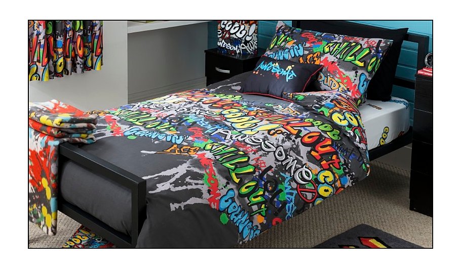 Boys Cool Graffiti Double Duvet Cover Set (Double Bed ...